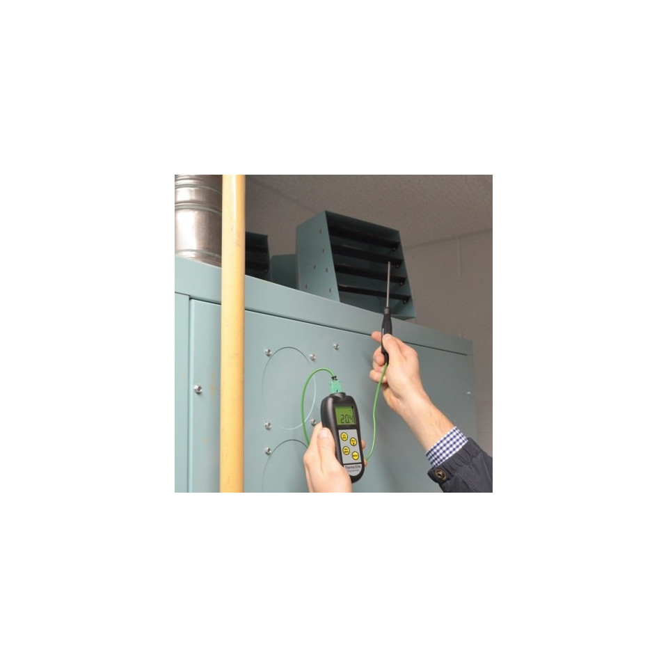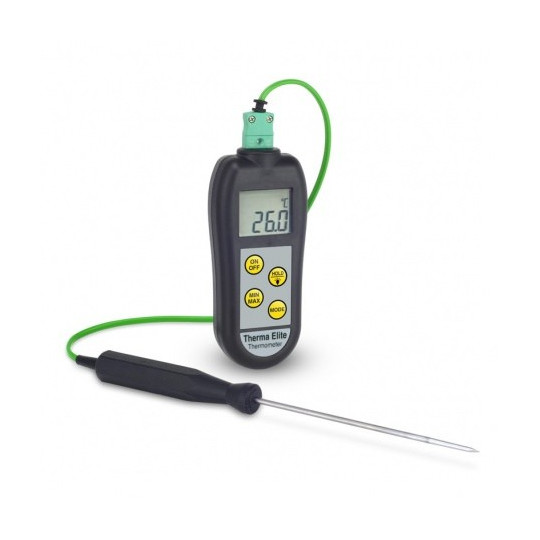 Le thermomètre numérique Therma Elite est un instrument robuste et facile à utiliser qui fonctionne dans une plage de -99,9 à 1372 °C avec une résolution de 0,1 °C ou 1 °C.