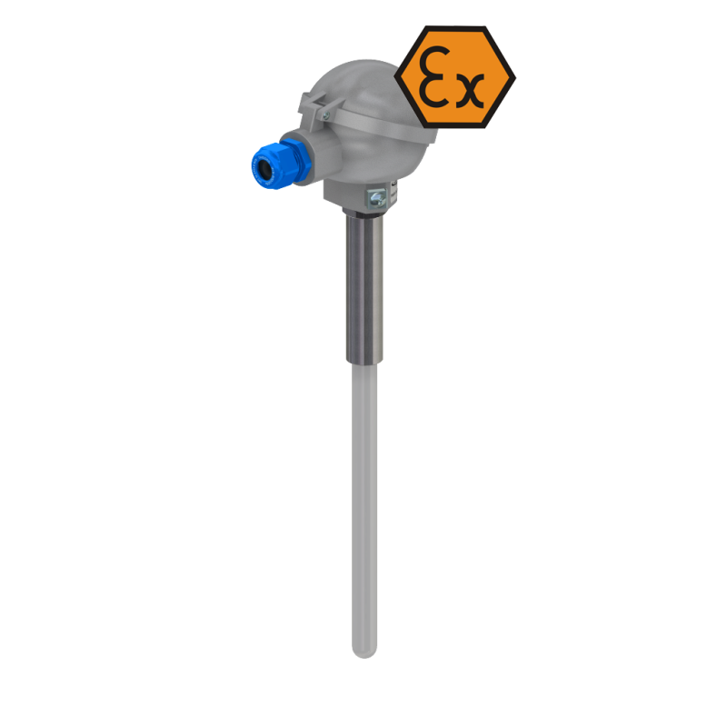 Le capteur se compose d'un insert de mesure interchangeable, d'un tube de protection extérieur en céramique et d'une tête de raccordement en aluminium où le montage d'un transmetteur de température avec un signal de sortie 4-20 mA / HART® ou Profibus®PA est possible.