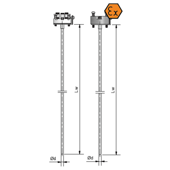 Les inserts de mesure pour thermocouples décrits ici sont conçus pour être installés dans un ensemble de protection. Le fonctionnement sans doigt de gant n'est recommandé que dans certaines applications. Ces inserts de mesure sont fabriqués à partir d'un câble gainé flexible à isolation minérale. Le capteur est monté dans un tube rigide à l'extrémité de l'insert de mesure. En plus d'être flexible, ce modèle présente une résistance exceptionnelle aux vibrations.
