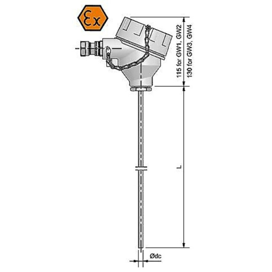 Les capteurs signés ex.jpg II 2G IIC Tx Gb et ex.jpg II 2D Ex tb IIIC TX Db ont été conçus pour la mesure de température en zone 1 (21) et 2 (22).