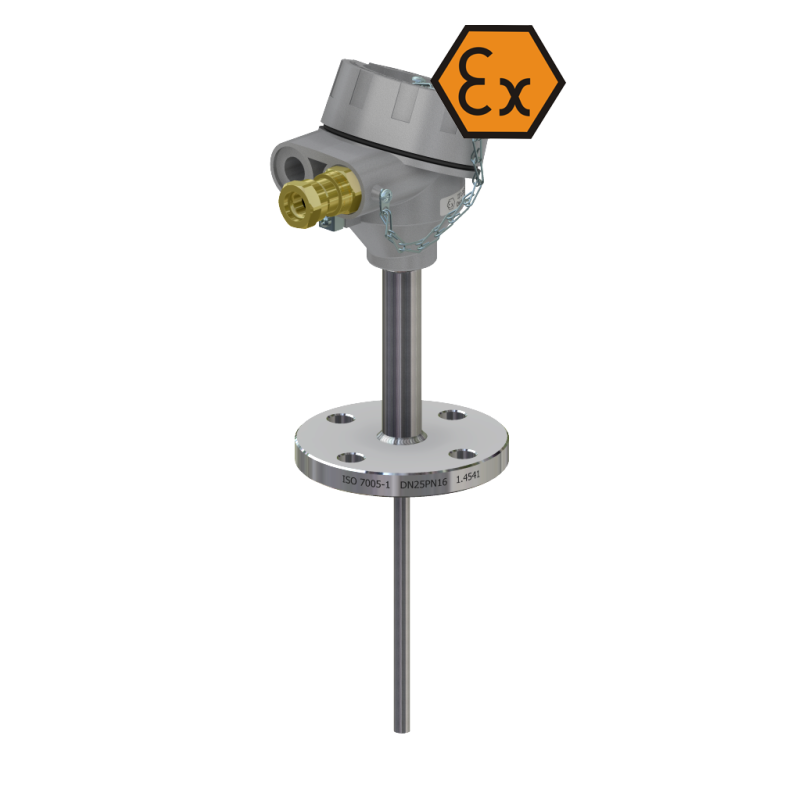 Les capteurs signés ex.jpg II 1 / 2G IIC T6 ÷ T5 Ga / Gb et ex.jpg II 1 / 2D Ex ta / tb IIIC TX Da / Db ont été conçus pour la mesure de température dans toutes les zones d'explosion de gaz, liquides, brouillards et poussières. Dans la zone 0 ou 20 ne peut être qu'un tube de protection. La tête de connexion ne peut être que dans les zones 1 (21) ou 2 (22). La limite entre les zones est le raccord fileté.