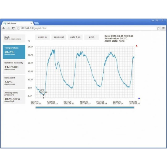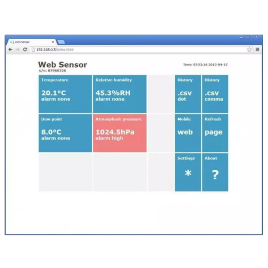 Capteur web de température ambiante, humidité relative et pression atmosphérique.